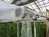 | 11/2 pipeハウスはカーテンが無いので、とりあえず内張りビニールを上げといた。 |